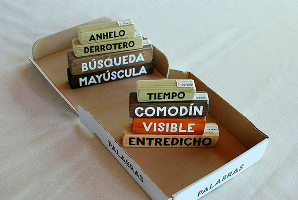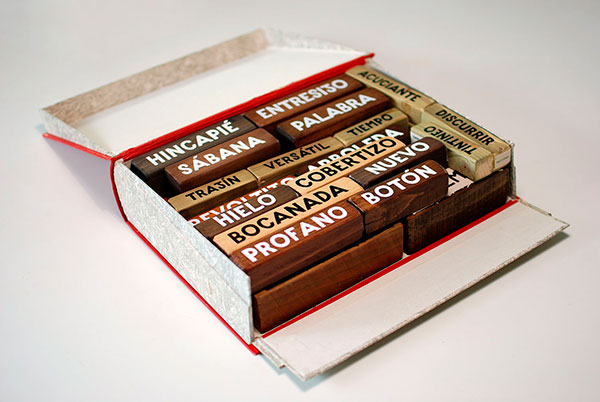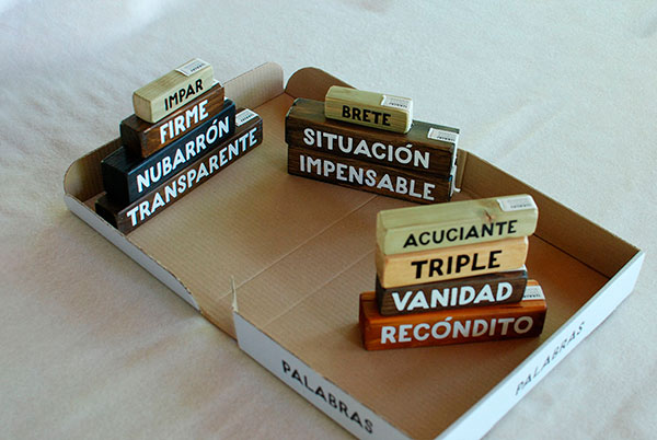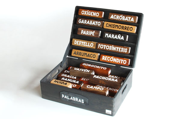 30 palabras y una caja con la tapa escalonada para exponerlas.
